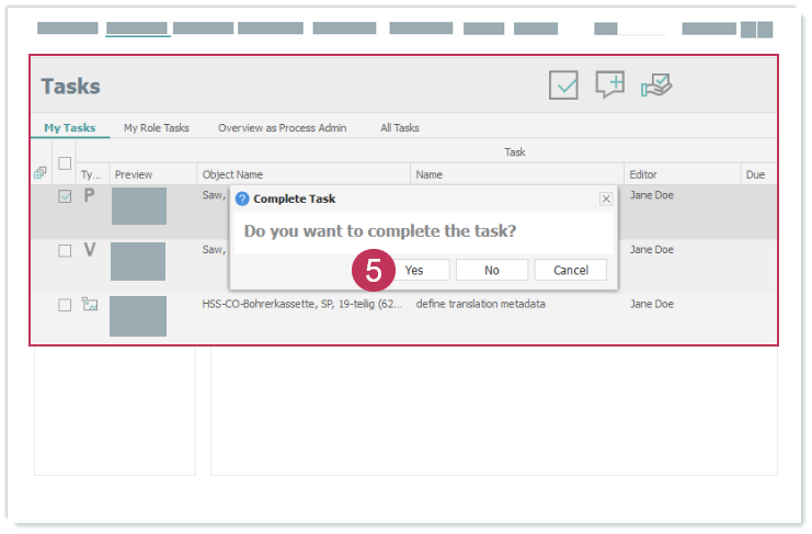 Aufgabe abschließen, Handlungsschritte 2-4Klicken Sie auf Ja, um das Abschließen der Aufgabe zu bestätigen.