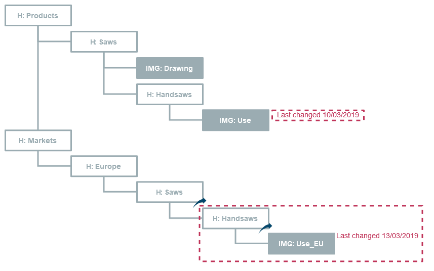 <PGR id="1234" name="Handsaws" ref_id="5678"> <IMG name="Drawing" category="Drawings" has_ref_id="5678" /> <IMG name="Use_EU" category="Use" has_ref_id="" change_date="13/03/2017"/> </PGR>Beim Export von allen Elementen werden alle Elemente berücksichtigt. Folgendes Code-Beispiel zeigt, welche Inhalte berücksichtigt werden, wenn die Referenz Handsaws exportiert wird: