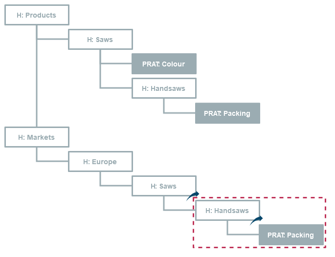 - Der Hierarchie Handsaws wird das Produktattribut Packing zugeordnet.