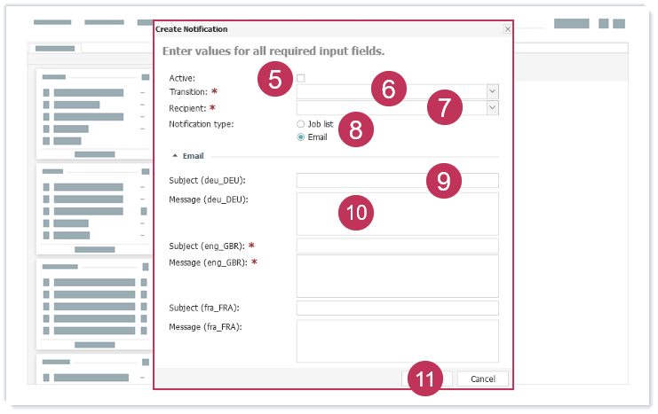 Benachrichtigung erstellen, Handlungsschritte 5-11