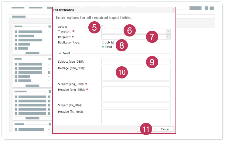 Benachrichtigung bearbeiten, Handlungsschritte 5-11