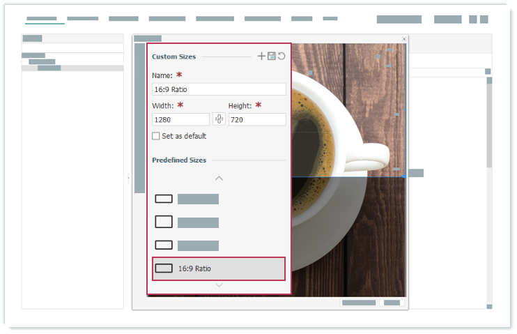 Ergebnis: Die benutzerdefinierte Größe ist erstellt und wird als Auswahl in den vordefinierten Größen angezeigt.