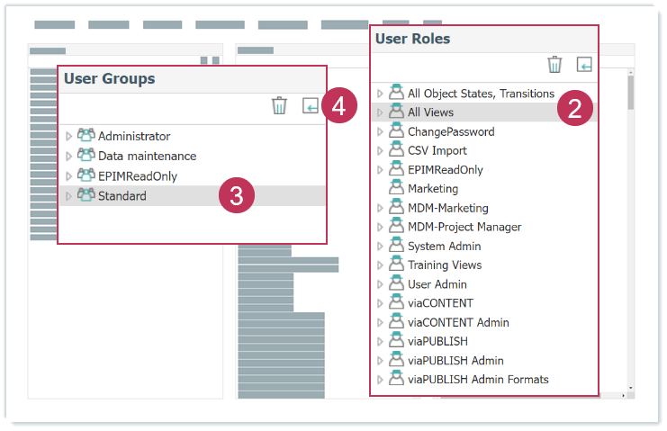 Benutzerrollen zu Benutzergruppen zuordnen, Handlungsschritte 2-4