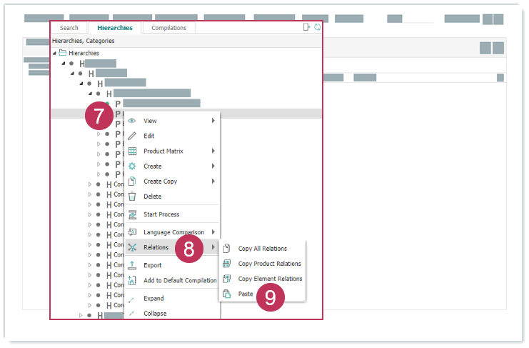 Beziehungen kopieren, Handlungsschritte 2-6- Klicken Sie mit der rechten Maustaste auf ein anderes Produkt.