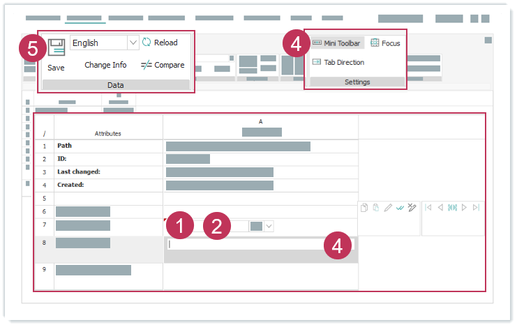 Beziehungsattribute in der Beziehungsattributmatrix bearbeiten, Handlungsschritte 1-5
