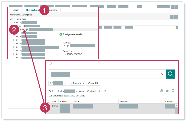 Bild aus der PowerSearch zuordnen, Handlungsschritte 4-6