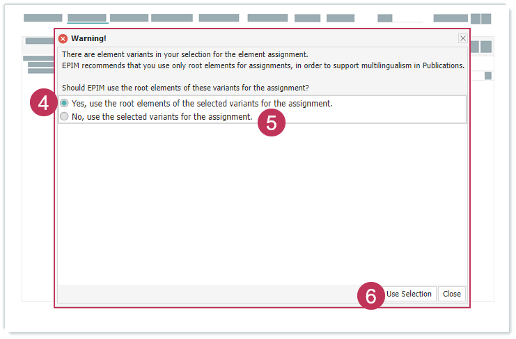 Wir empfehlen Wurzelelemente zuzuordnen, da mögliche sprachenabhängige Elementvarianten beim XML-Export von Publikationen abhängig von der Sprache des XML-Exports exportiert werden.