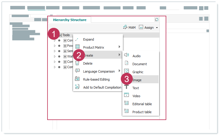 - Klicken Sie mit der rechten Maustaste auf die Hierarchie, das Produkt oder die Produktvariante.