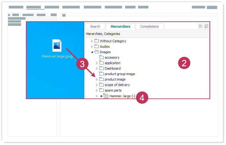 Ziehen Sie die Dateien per Drag-and-drop auf die Elementkategorie.