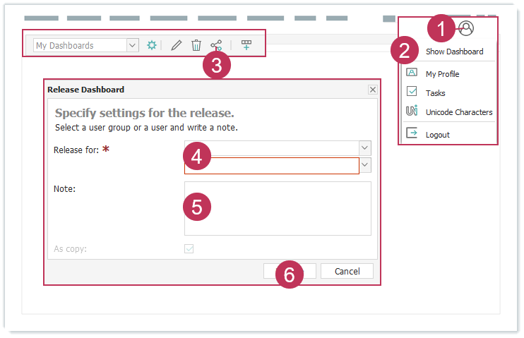 Dashboard freigeben, Handlungsschritte 1-6