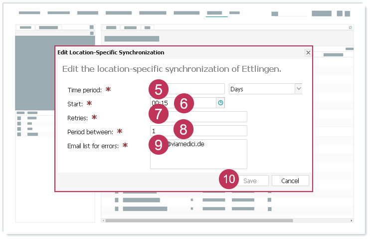 Daten pro Standort synchronisieren, Handlungsschritte 2-4- Geben Sie eine Zeitspanne ein.