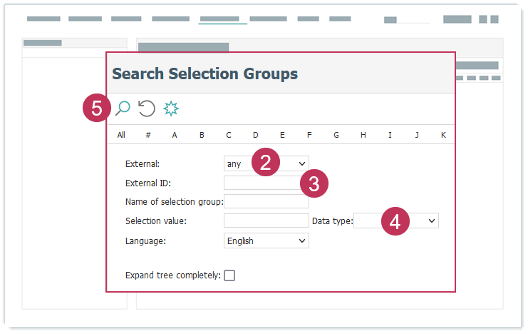 - Wählen Sie aus, ob externe Auswahlgruppen beim Suchen berücksichtigt werden.