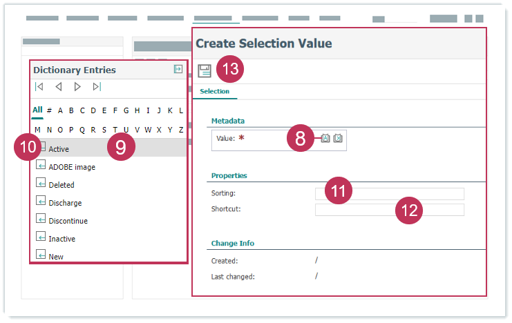 Dictionary-Auswahlwert erstellen, Handlungsschritte 8-13