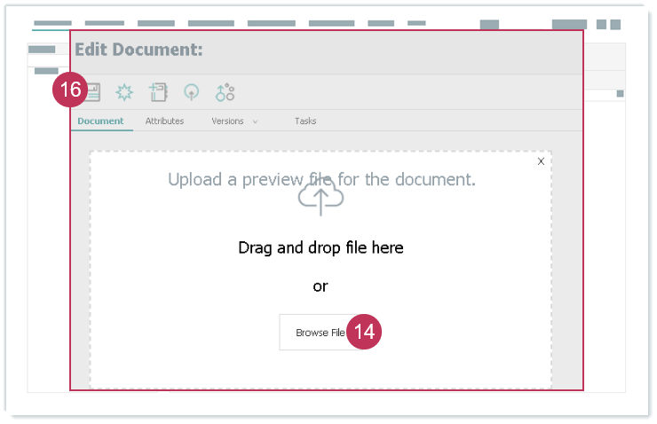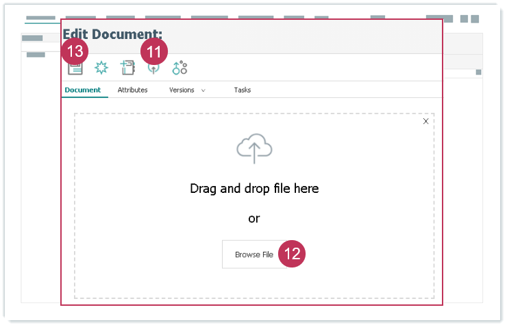 Dokumentelement erstellen und zuordnen, Handlungsschritte 11-13- Klicken Sie auf Datei suchen.