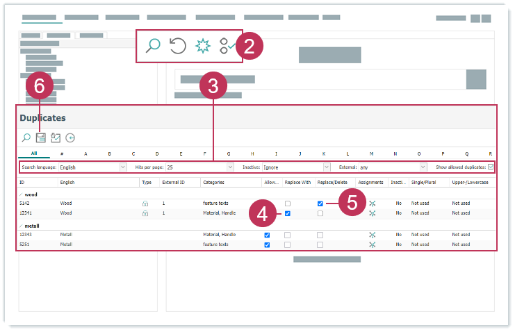 Duplikate von Wörterbucheinträgen ersetzen, Handlungsschritte 2-6