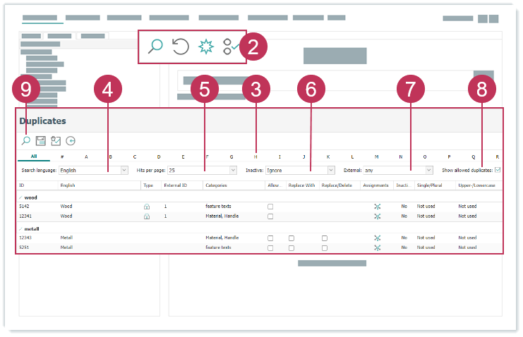 Duplikate von Wörterbucheinträgen suchen, Handlungsschritte 2-9