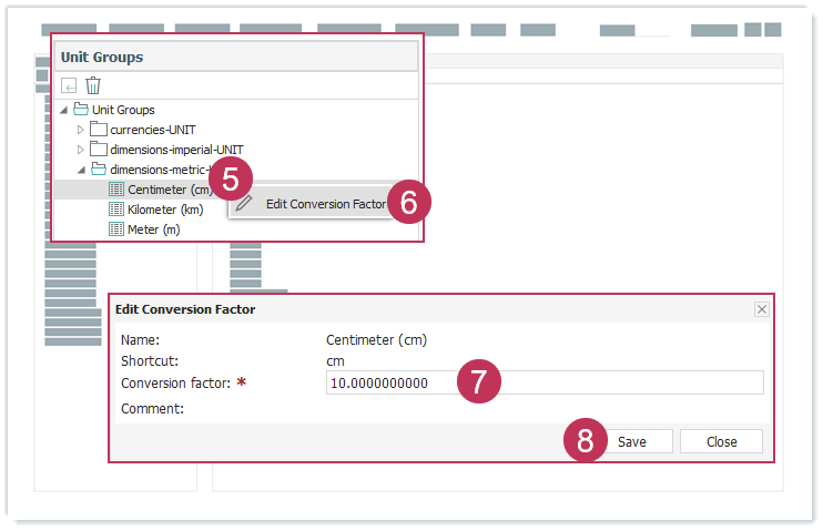 - Änderungen am Umrechnungsfaktor müssen für bestehende Zuordnungen der Einheit zu Einheitengruppen manuell aktualisiert werden.