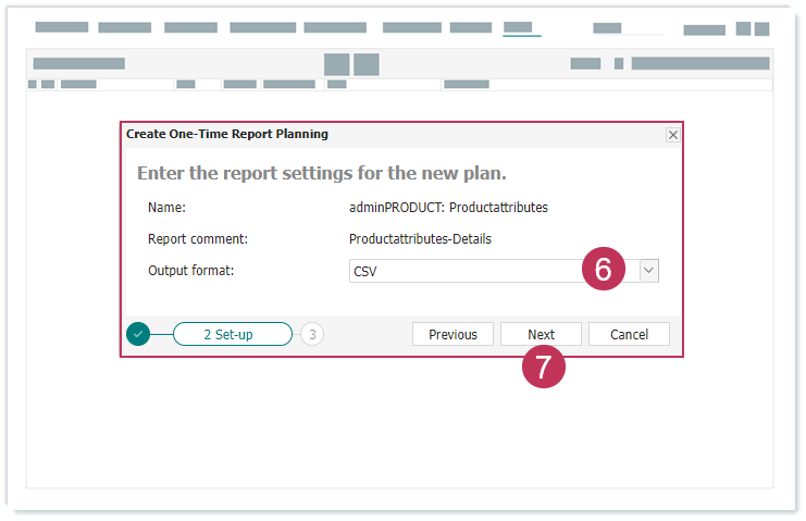 Einmalige Reportplanung erstellen, Handlungsschritte 4-5- Wählen Sie ein Ausgabeformat aus.