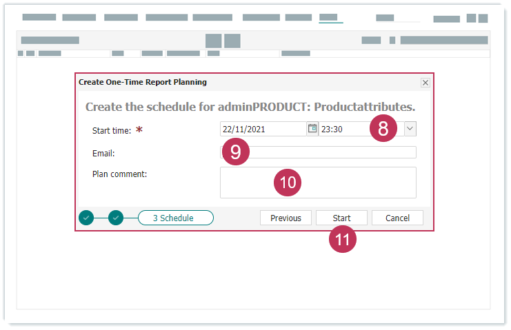 Einmalige Reportplanung erstellen, Handlungsschritte 8-11