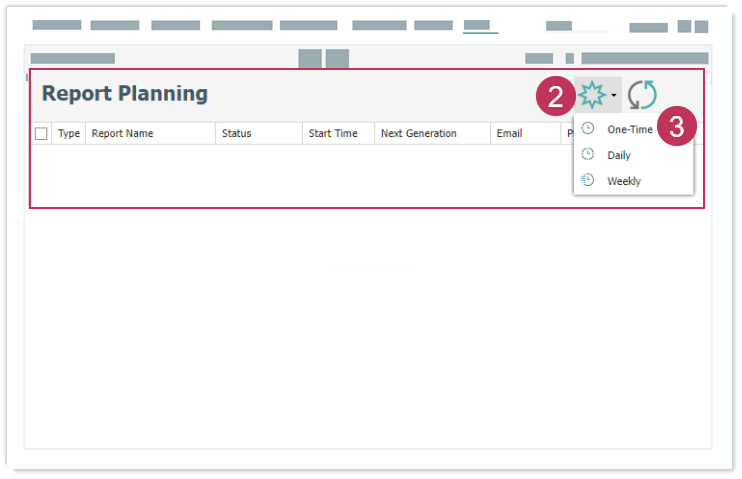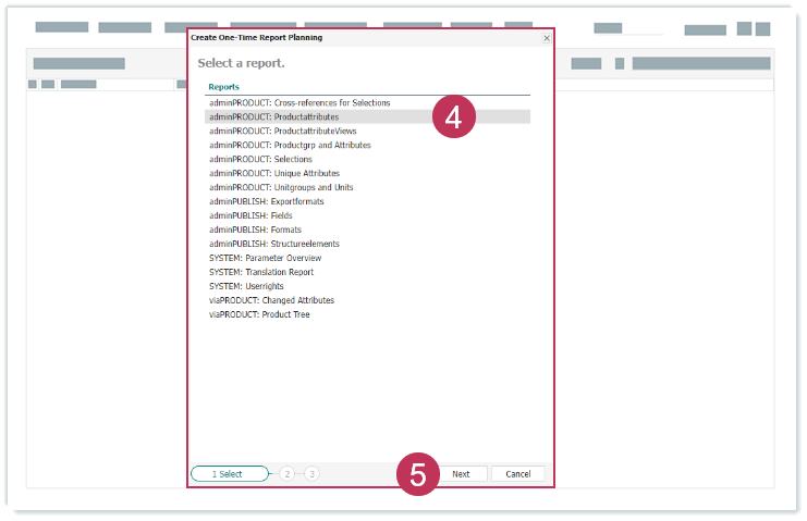 Einmalige Reportplanung erstellen, Handlungsschritte 2-3- Wählen Sie einen Report aus.