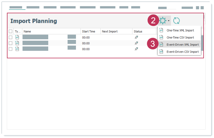 Mit der Importplanung können CSV-Importe und XML-Importe zu festgelegten Zeiten durchgeführt werden oder anhand von Ereignissen gesteuert werden.