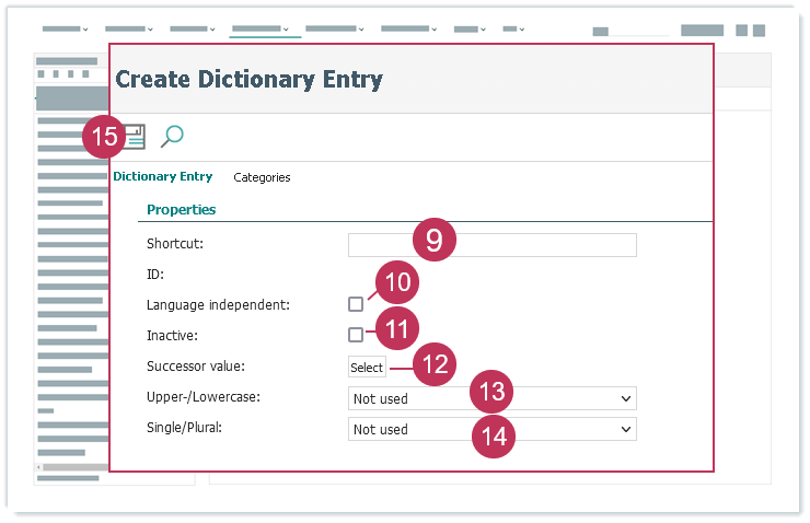 - Öffnen Sie adminCONTENT → Wörterbuch → Einträge.