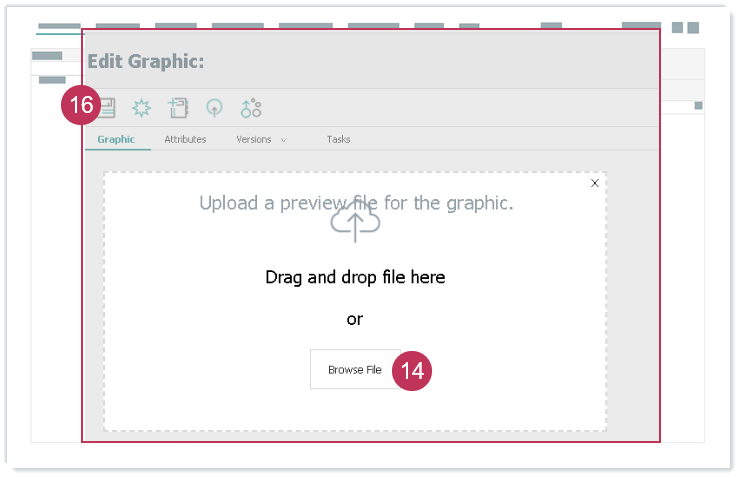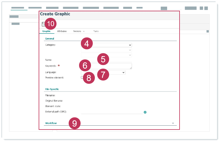 Grafikelement erstellen und zuordnen, Handlungsschritte 4-10- Klicken Sie auf Upload.
