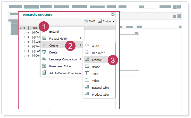 - Klicken Sie mit der rechten Maustaste auf die Hierarchie, das Produkt oder die Produktvariante.
