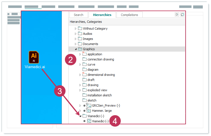 - Ziehen Sie die Dateien per Drag-and-drop auf die Elementkategorie.