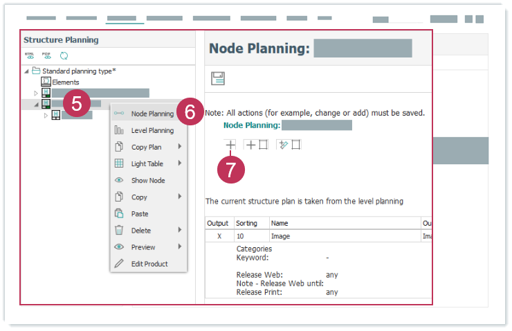 Knotenplanung für Standardstrukturplanung erstellen, Handlungsschritte 2-4- Klicken Sie mit der rechten Maustaste auf eine eingeplante Hierarchie.