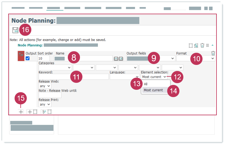 Knotenplanung für Standardstrukturplanung erstellen, Handlungsschritte 8-16