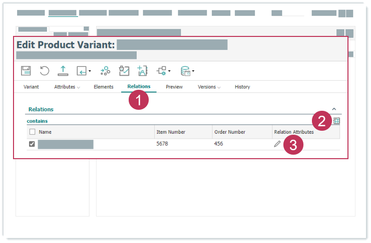 Konfigurierbare Beziehungsattribute bearbeiten, Handlungsschritte 1-3Klicken Sie auf die Registerkarte Attribute, um Beziehungsattributwerte zu bearbeiten.