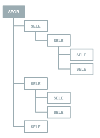 Auswahlgruppen können bis zu 6 Stufen tief sein. Abhängig von der definierten Tiefe und den festgelegten Auswahlwerten können beim Bearbeiten der Produktattributwerte und beim Bearbeiten der Elementattributwerte nur untergeordnete Auswahlwerte gewählt werden.