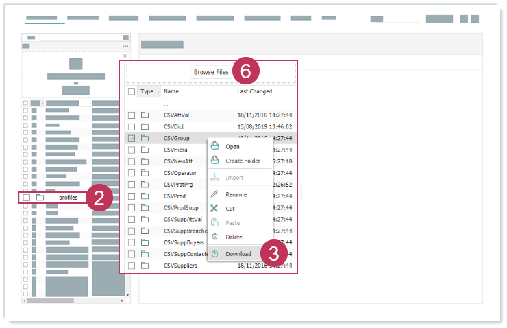 - Klicken Sie mit der rechten Maustaste auf ein CSV-Importprofil und wählen Sie Download aus.