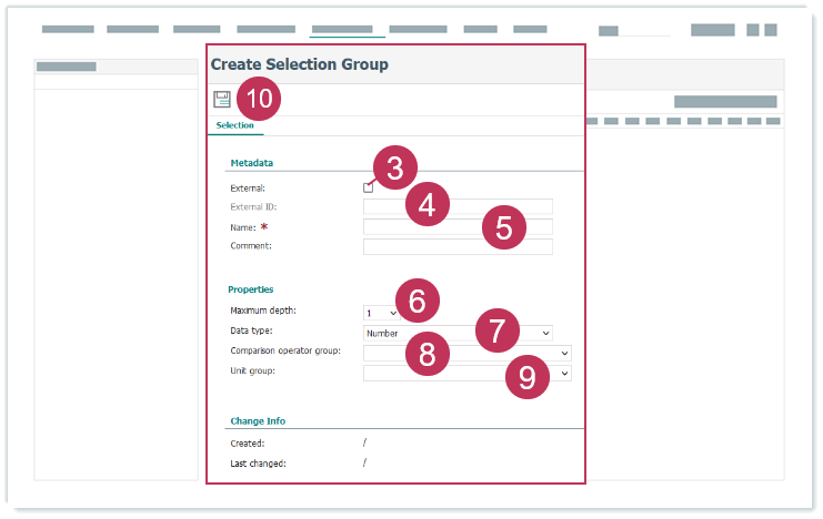 Externe Number-Auswahlgruppen können nur erstellt werden, wenn der Systemparameter Enable_ExternalMetadataRepository im Ordner Metadata Repository (Systemparameter) aktiviert ist und das Benutzerrecht Metadaten-Repository: Externe Auswahlgruppen erstellen und aktualisieren zugeordnet ist.