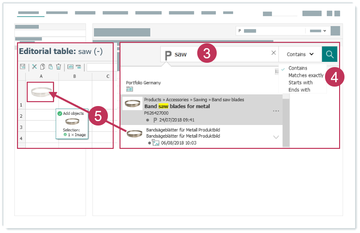 Objekte in redaktionellen Tabellen wiederverwenden, Handlungsschritte 1-2- Geben Sie einen Suchbegriff für das Objekt ein, das Sie wiederverwenden möchten.