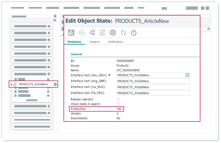 Ergebnis: Die ausgewählte Version des Objektstatus wird produktiv verwendet.