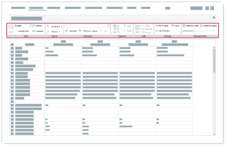 In der Produktmatrix steht Ihnen ein Ribbon-Menü zur Verfügung. Mit dem Ribbon-Menü können mehrere Objekte gleichzeitig bearbeitet werden.
