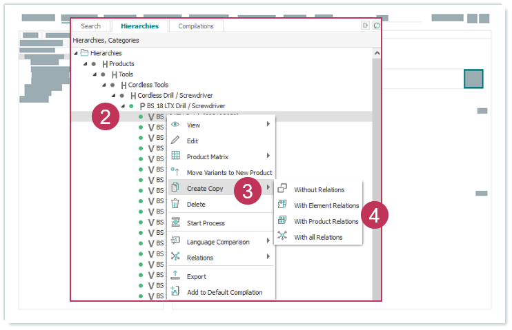 Produktvariante kopieren, Handlungsschritte 5-8Wählen Sie das übergeordnete Produkt aus.