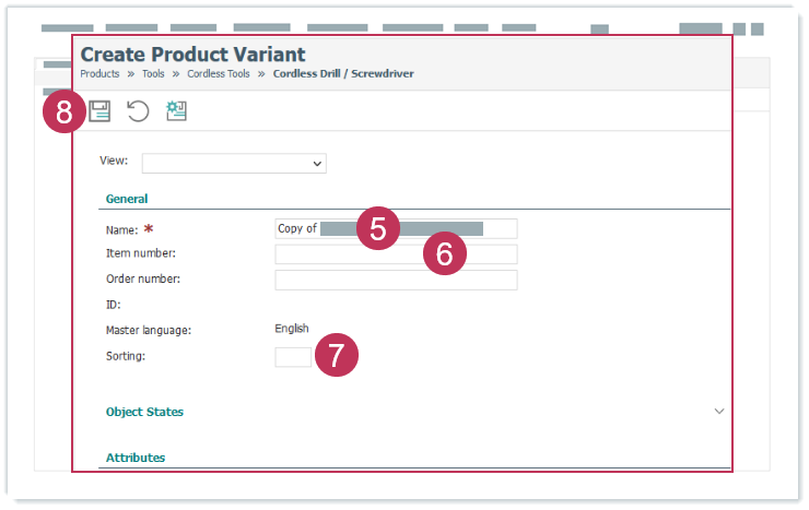 Produktvariante kopieren, Handlungsschritte 2-4- Geben Sie einen Namen ein.