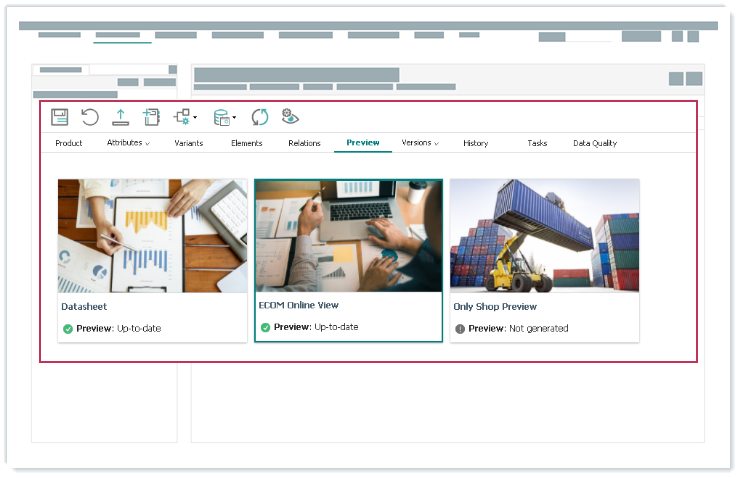 In einer Produktvorschau können die Inhalte von Publikationen mit dem Planungstyp Produktexport (regelbasiert) beim Bearbeiten des Produkts oder der Produktvariante angezeigt werden.