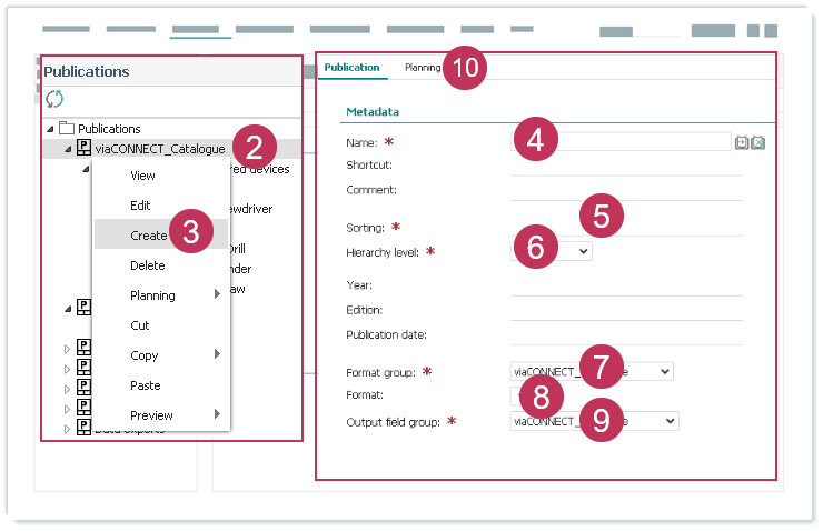 - Geben Sie eine Zahl für die Sortierung im Publikationsbaum ein.