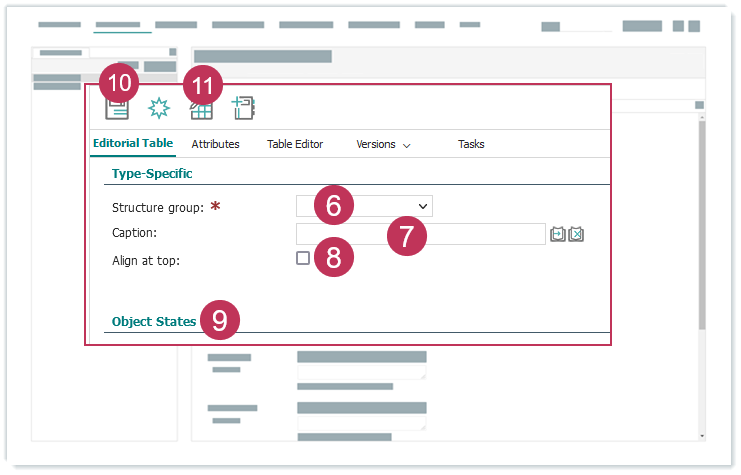 Redaktionelle Tabelle erstellen, Handlungsschritte 2-5- Wählen Sie eine Strukturgruppe aus.