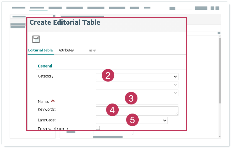 - Öffnen Sie viaCONTENT → Neu → Redaktionelle Tabelle.