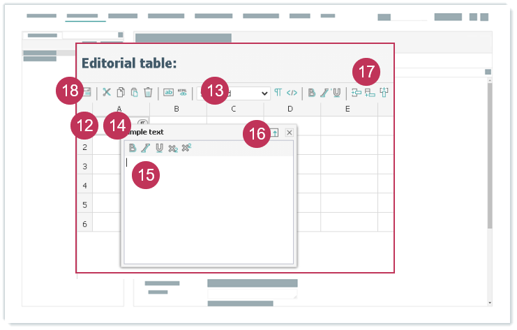 - Bearbeiten Sie die redaktionelle Tabelle mit der Aktionen-Toolbar.