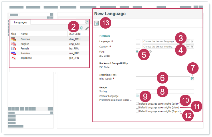 - Wenn Sie die Sprache als Inhaltssprache definiert haben, wählen Sie aus, ob Sie Standard-Sprachzugriffsrechte für die Bearbeitung von Objekten aktivieren möchten.