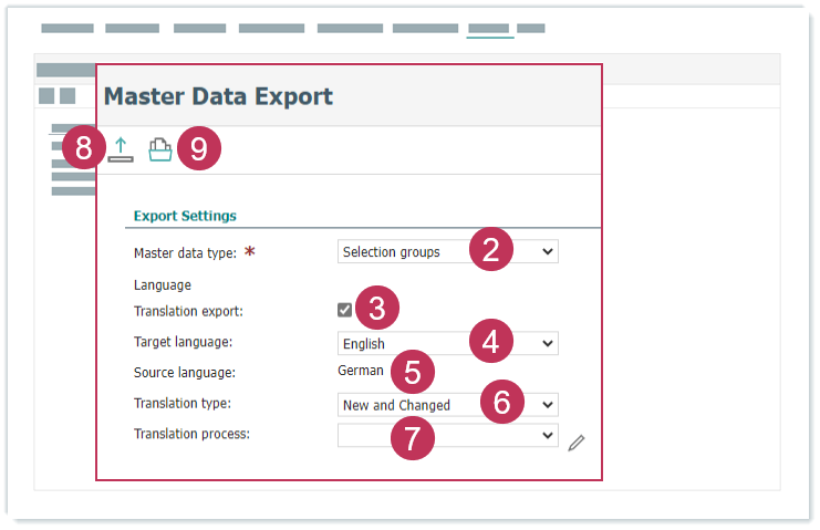 - Wählen Sie Übersetzungsexport aus, wenn Sie die Stammdaten zur Übersetzung exportieren möchten.
