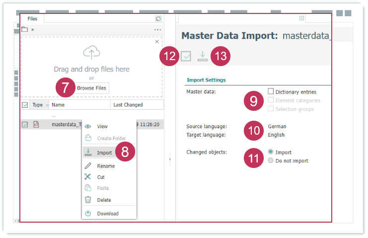 Stammdaten-XML-Datei importieren, Handlungsschritte 7-13