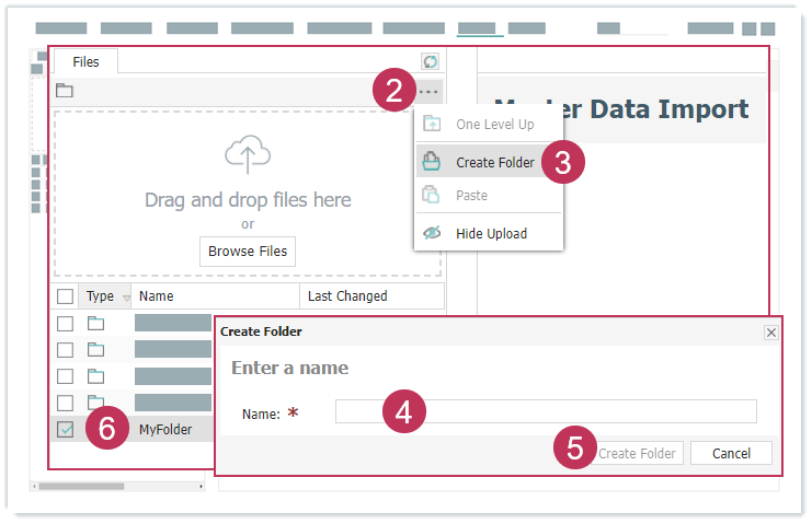 Stammdaten-XML-Datei importieren, Handlungsschritte 2-6- Klicken Sie auf Dateien suchen und wählen Sie Dateien auf Ihrem Computer aus.