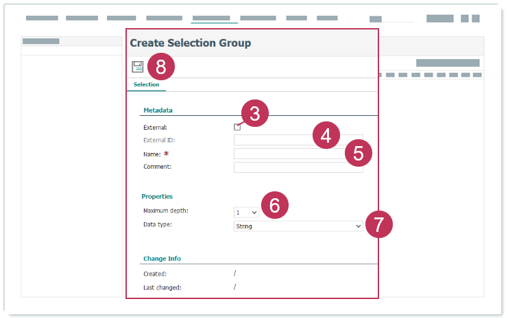 Externe String-Auswahlgruppen können nur erstellt werden, wenn der Systemparameter Enable_ExternalMetadataRepository im Ordner Metadata Repository (Systemparameter) aktiviert ist und das Benutzerrecht Metadaten-Repository: Externe Auswahlgruppen erstellen und aktualisieren zugeordnet ist.